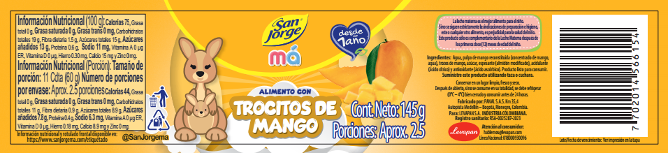 La leche materna es el mejor alimento para el niño/a. Este producto sólo es complementario de la leche materna después de los primeros doce (12) meses de edad del niño/a.